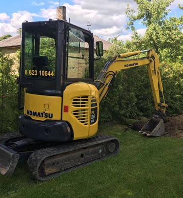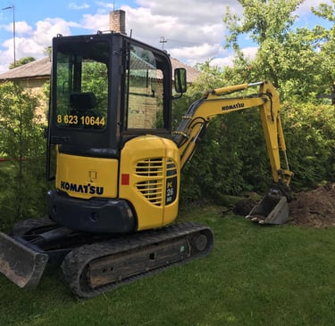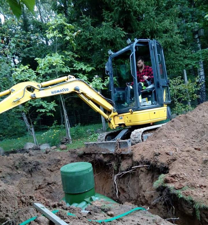 * Mini ekskavatoriaus nuoma su operatoriumi ir visi žemės kasimo darbai *Planiravimo darbai *Vietiniai nuotekų valymo tinklai *Nuotekų valymo įrenginiai *Drenažo sistemų įrengimas *Drenažo šulinių įrengimas *Žemės kasimo, lyginimo darbai *Tranšėjų, pamatų, drenažų, kanalizacijų, vandentiekių, elektros kabelių, dujotiekiui, nuotekoms ir kitoms požeminėms sistemoms kasimas, užkasimas, įrengimas *Polių gręžimas *Kelmų rovimas *Pamatų atkasimas šiltinimui *Grunto nukasimas